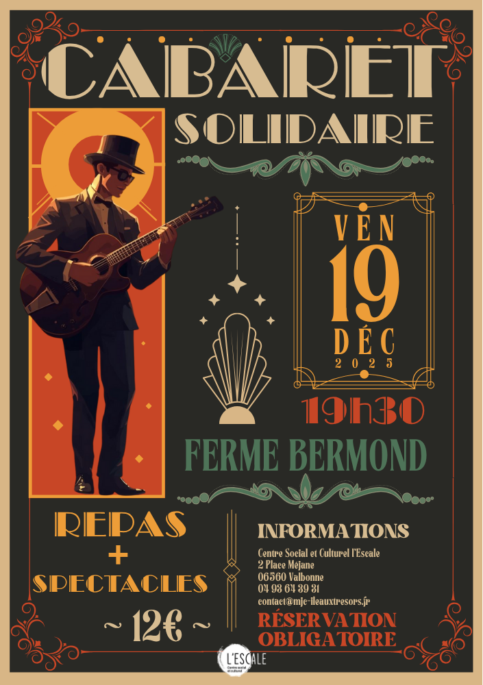 Le Cabaret Solidaire de l’Escale vous ouvre ses portes le vendredi 19 décembre 2025 à la Ferme Bermond pour une soirée festive et conviviale à ne pas manquer !
